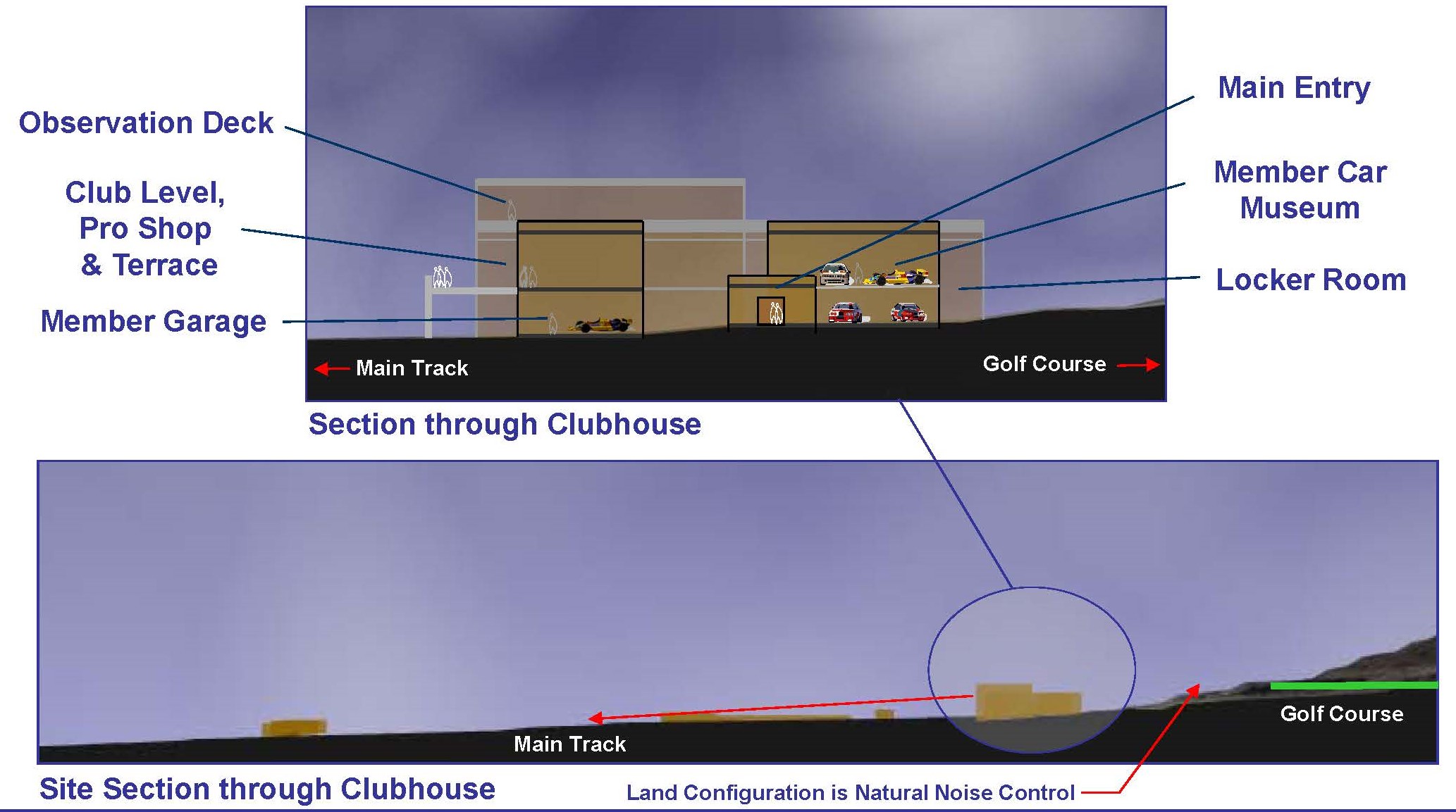 The improvements to the site will provide the landowner with a more lucrative avenue for advertising and promotion conducive to their existing clientele. The Resort’s Membership would include the Private Member’s Track with 365 day admittance, access to the First Class Clubhouse with Restaurant and Lounge, a Pro Shop & Tech Shop, also providing a Member’s Race & Vintage Car Museum, Vehicle Storage Facilities, optional Trackside “Garage Majals”, Locker Rooms & Showers, and much more.