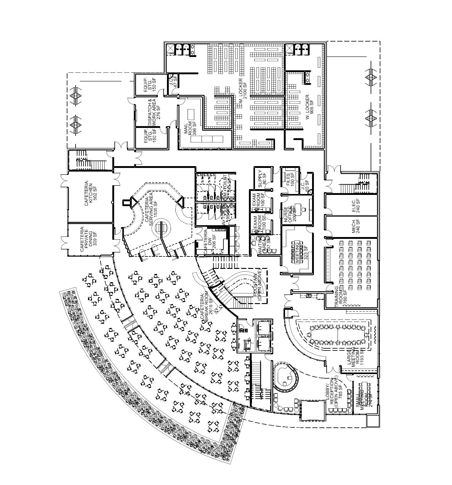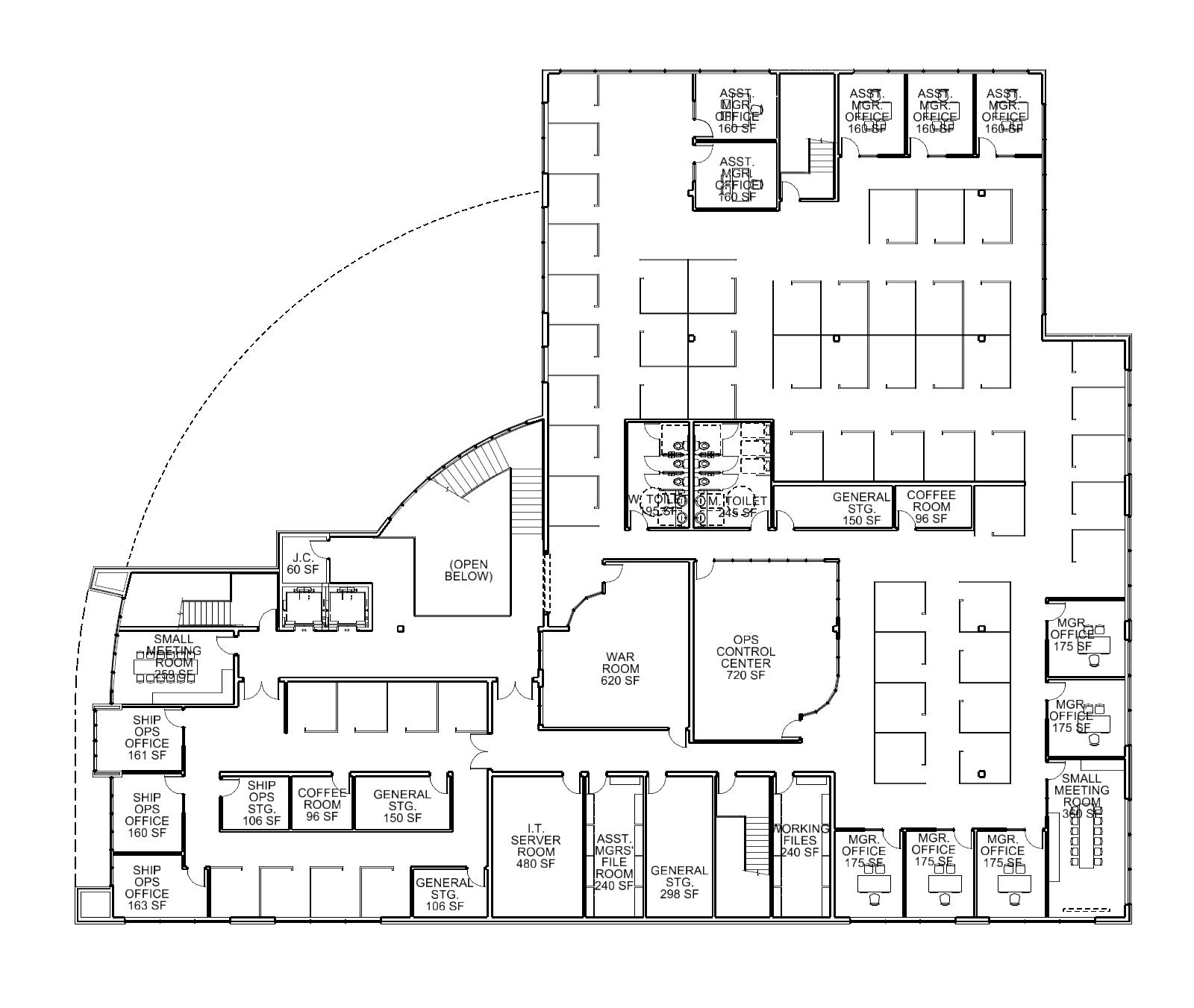 The Operations Center is designed to house the port operations’ departments (Container and Ship Operations) along with a cafeteria, locker space, and health services. The first level of the facility is developed to hold the common functions such as the cafeteria, lockers, meeting space, secured entry/lobby, employee training, and mechanical/electrical. All entrances are secured through the use of vestibules and fencing. The second level is to act as a space to be developed for future port use or leased tenant space. On the third level are the administrative functions of the Container and Ship Operations which is organized to oversee the ports and to be centralized around the War Room and Operations’ Control Center.