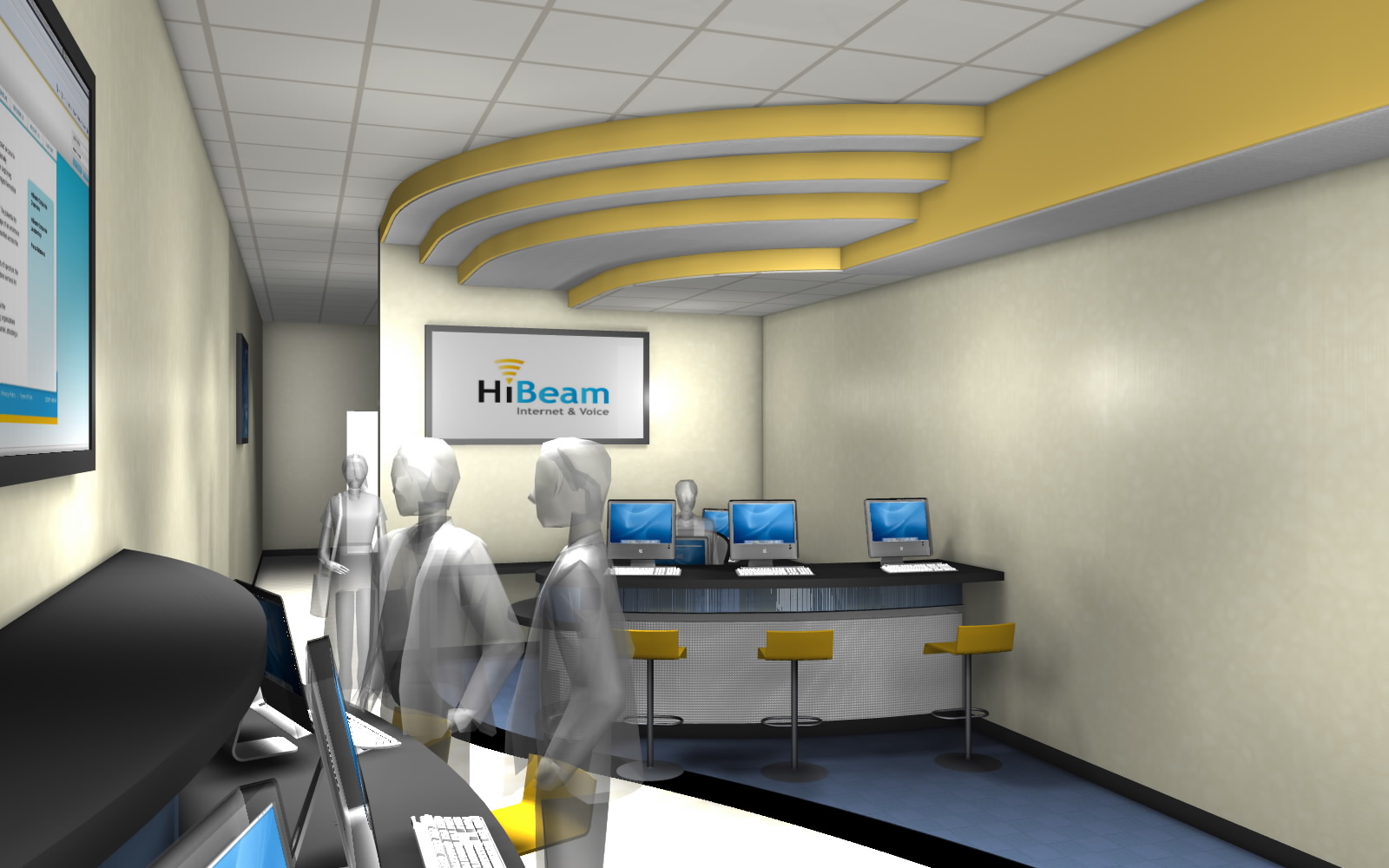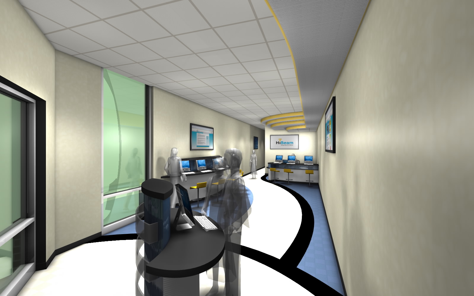 Context Design Group designed a 1,200 square foot retail space for the internet and voice service provider HiBeam. This design is the second in a series of retail stores the company will be creating. The site for this second store is located in a strip mall in Marion, Illinois. The space that was leased was even narrower than the first store, so it was key in the design to be able to work with that narrowness and still be able to create a functional space.