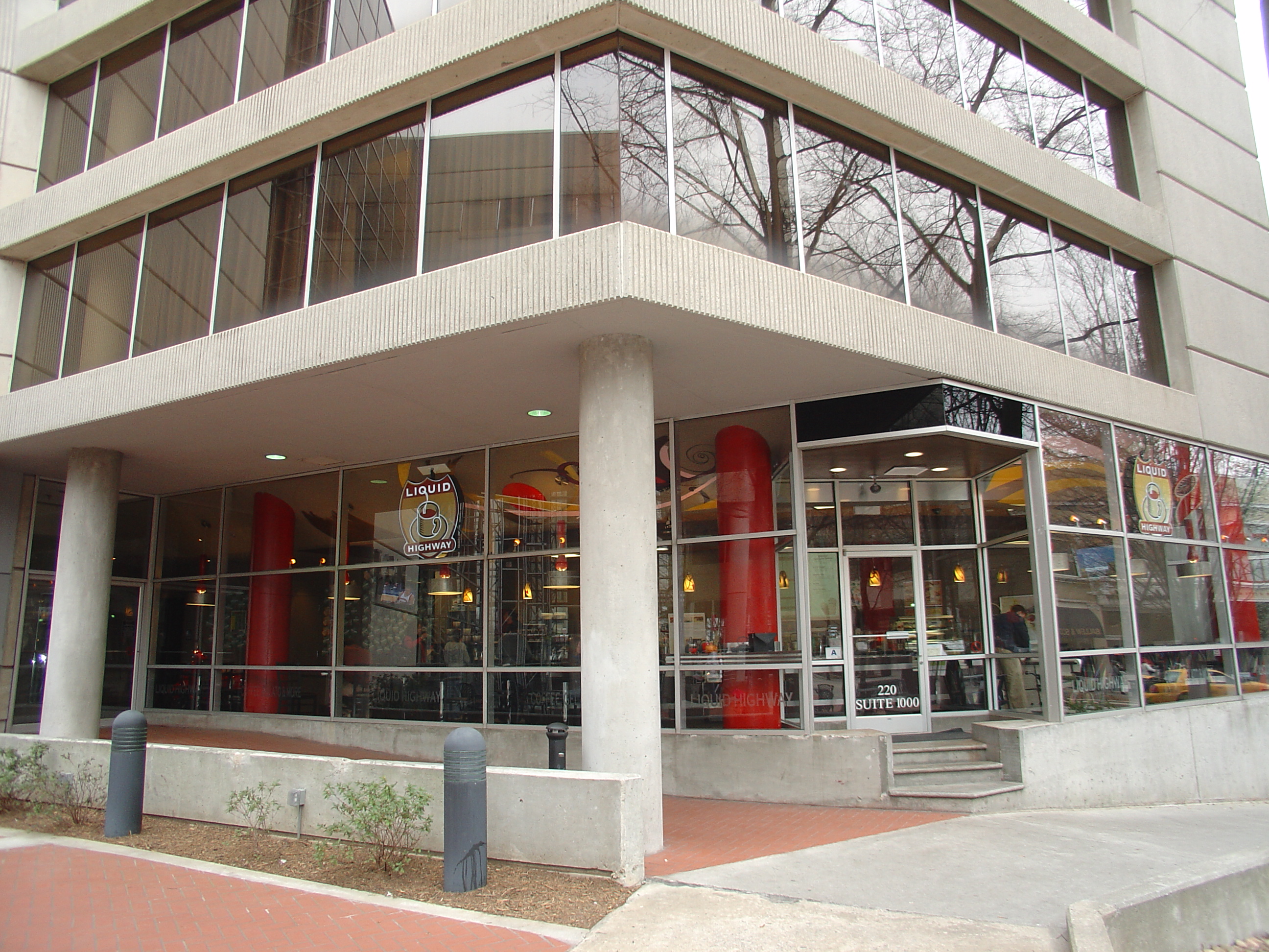 To further their goal to expand the Liquid Highway franchise throughout South Carolina, Liquid America turned to Context Design Group to develop a custom renovation for their coffee restaurant. The renovation project is located at the Hyatt hotel in downtown Greenville, SC. Working with the client, Context Design Group developed a solution that would both provide a unique experience and features a look that is distinctive to the Liquid Highway franchise. This was achieved through the interior finishes, equipment arrangement, and the organizational layout.
