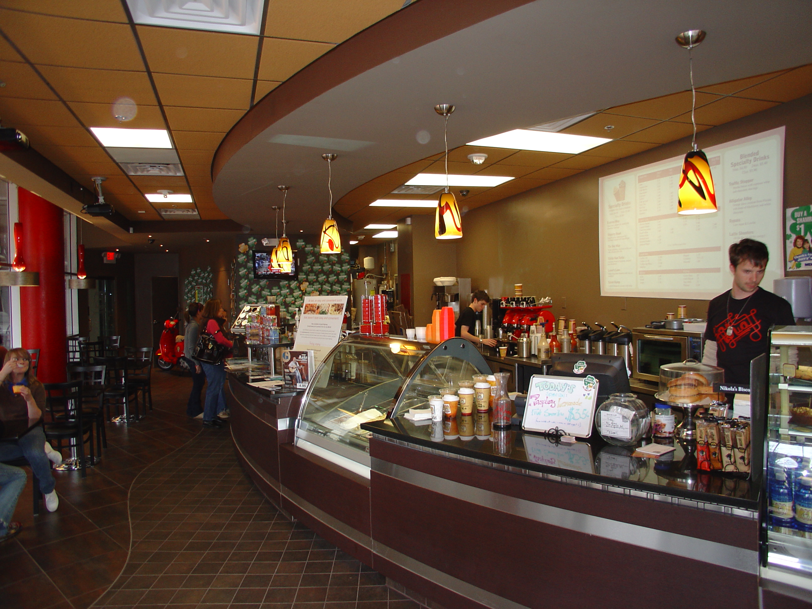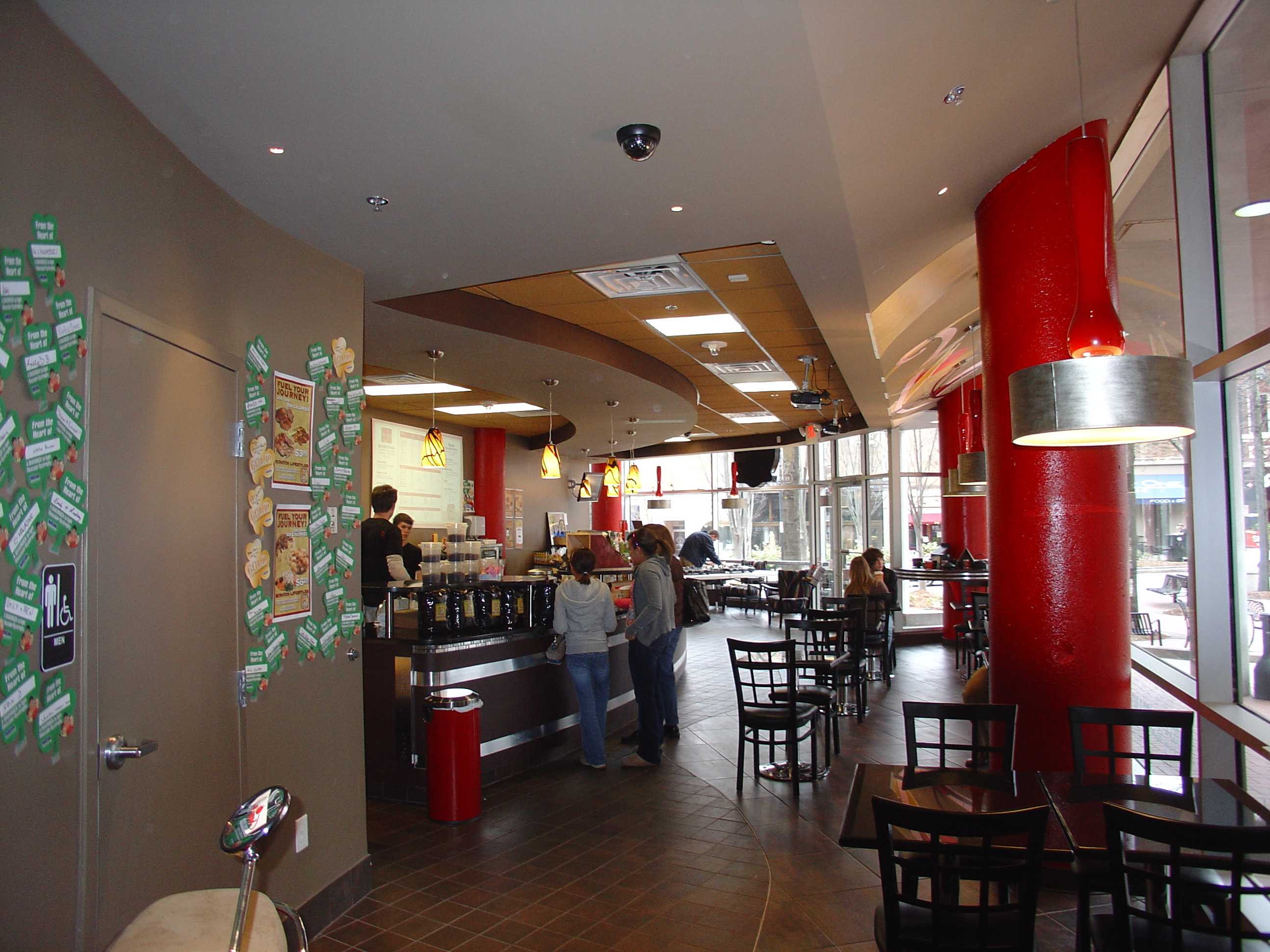 Context Design Group designed the equipment layout to be efficiently maneuverable and functional for the staff. The restaurant featured a distinctive custom designed serving counter which incorporates a stylish gelato case and pastry case. The counter was arranged to direct the circulation of the serving process from the order station to the pick-up station. The barista stations are positioned behind the serving counter to allow the coffee preparation process to be visible to the Liquid Highway costumers. However, support functions such as the dishwashing station are located in the rear of the building hidden from the patrons’ view.