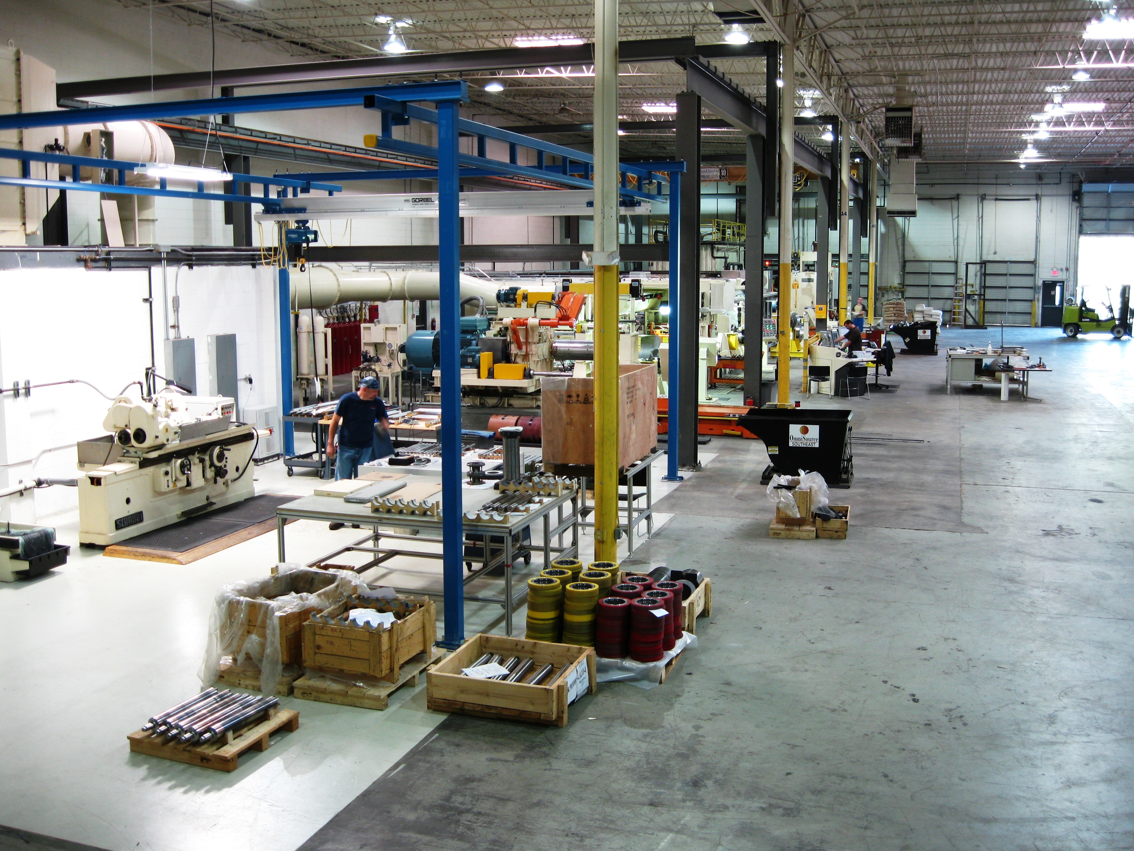 Context Design Group developed an optimum layout to house their rolling mill, slitter line and staging space for raw materials, WIP and finish goods. The equipment was being manufactured for the German Market and was shifted to the US due to strength of market conditions. Because of the specifics machine there were particular concerns with the elaborate manufacturing processes and minimal tolerances required to support the machine. Because of these, every dimension of the new concrete floor/foundation is critical to the success of the machine installation and product quality. The two lines incorporate approximately 650 and 300 cubic yards of concrete for the rolling mill and slitter foundations respectively.