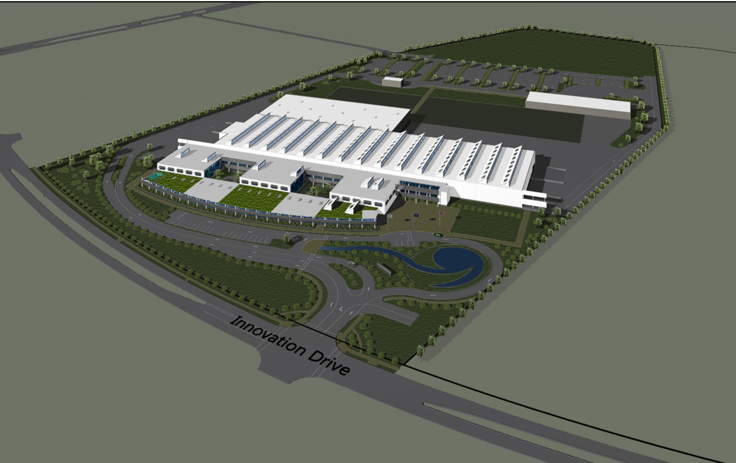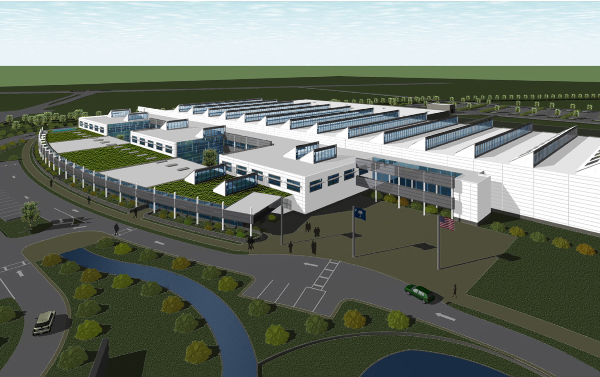 The 1st Phase accounts for production of up to 1500 fully electric buses annually via two assembly lines divided into 14 workstations. Modular subassembly work cells divide the two lines which maximizes supply access. Three individual five-ton cranes operating in separate bays traverse the entire floor of the assembly and subassembly areas. Highbay Narrow-Aisle storage provides just-in-time sequencing of materials to the assembly line. The facility is being considered for LEED Silver Certification. One important “green” element is the emphasis on natural daylighting through the roof monitors in Assembly and the interior courtyards in the Office.