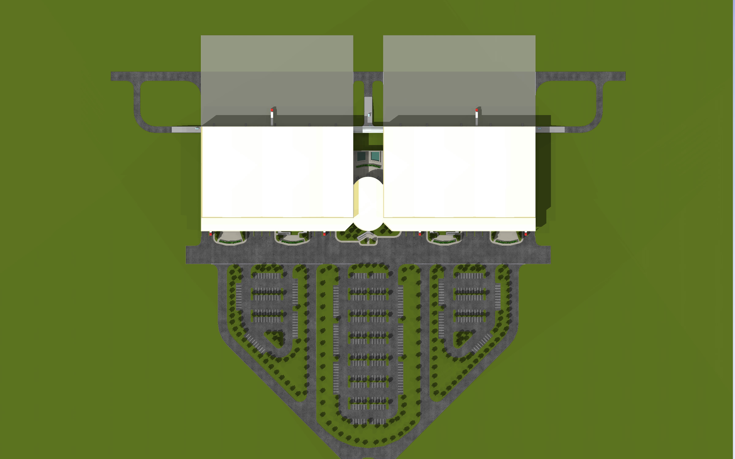 The Automotive Sequencing Center is comprised of two main pods to be used for incoming receiving/staging, 3-5 days storage or warehousing, final assembly, outgoing staging/shipping in addition to common office facilities, and a IT/logistics centralized “command center” core. The design incorporates a modular tenant separation to provide ultimate flexibility. The facility can provide space and services to support between 1 & 10 suppliers when fully sub-divided. Sequencing Center’s warehouses are devised to allow the flexibility of facility by up to ten potential suppliers. The facility is designed to by two times for a total of 662,000sf. The office facilities are developed to provide for the suppliers’ administrative functions. However, the centralized core holds the common functions for the facilities such as the cafeteria, locker rooms, meeting rooms, training space, and a secured lobby.