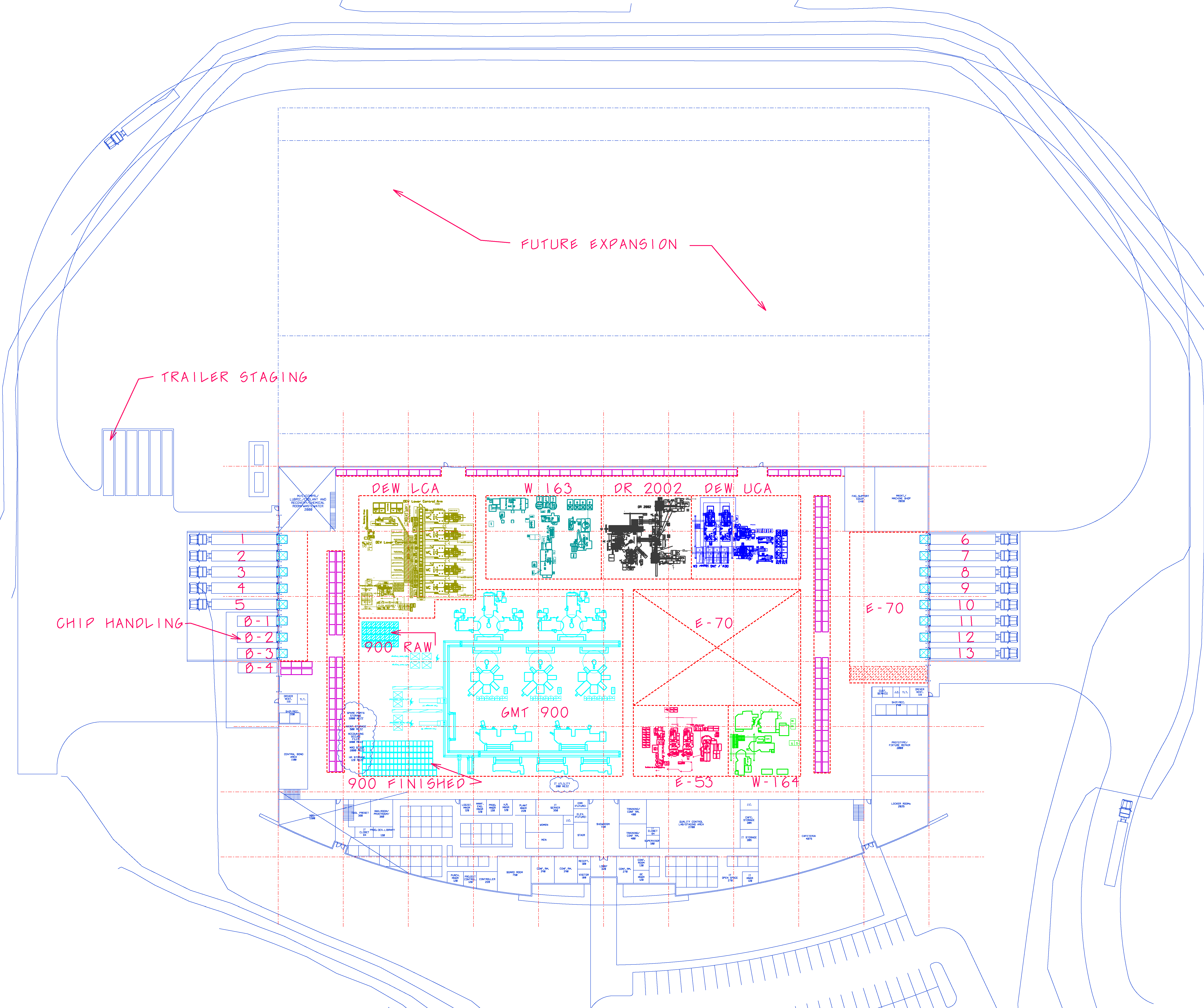 Minimizing WIP, streamlining processes, and reducing overall inventory in the facility was the prime goal. Layout and process flow analysis utilizes techniques of the Toyota Production System. The logistic support areas were designed for a maximum of three (3) days of internal storage. Incorporating space for future programs was designed into Phase I of the Newton facility.
